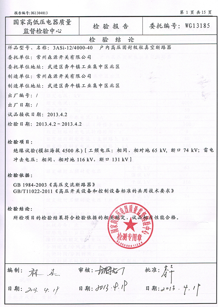 熱烈祝賀我公司3ASi-12/1250-31.5產(chǎn)品4500米高海拔檢驗成功